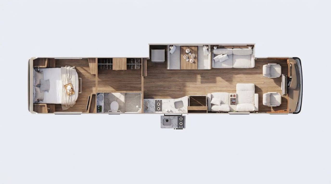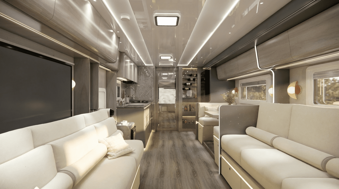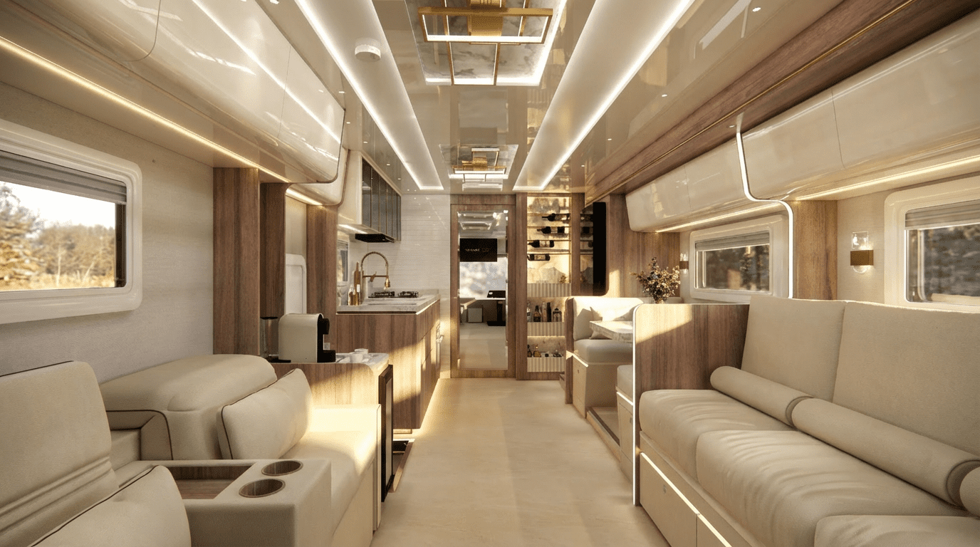Montado com cabine exclusiva projetada pela Neway sobre a plataforma dos chassis de ônibus Volvo B510R ou Scania K320/K370 (10,5m a 12,0m comprimento), o Neway LEGACY, acomoda 08 pessoas confortavelmente.