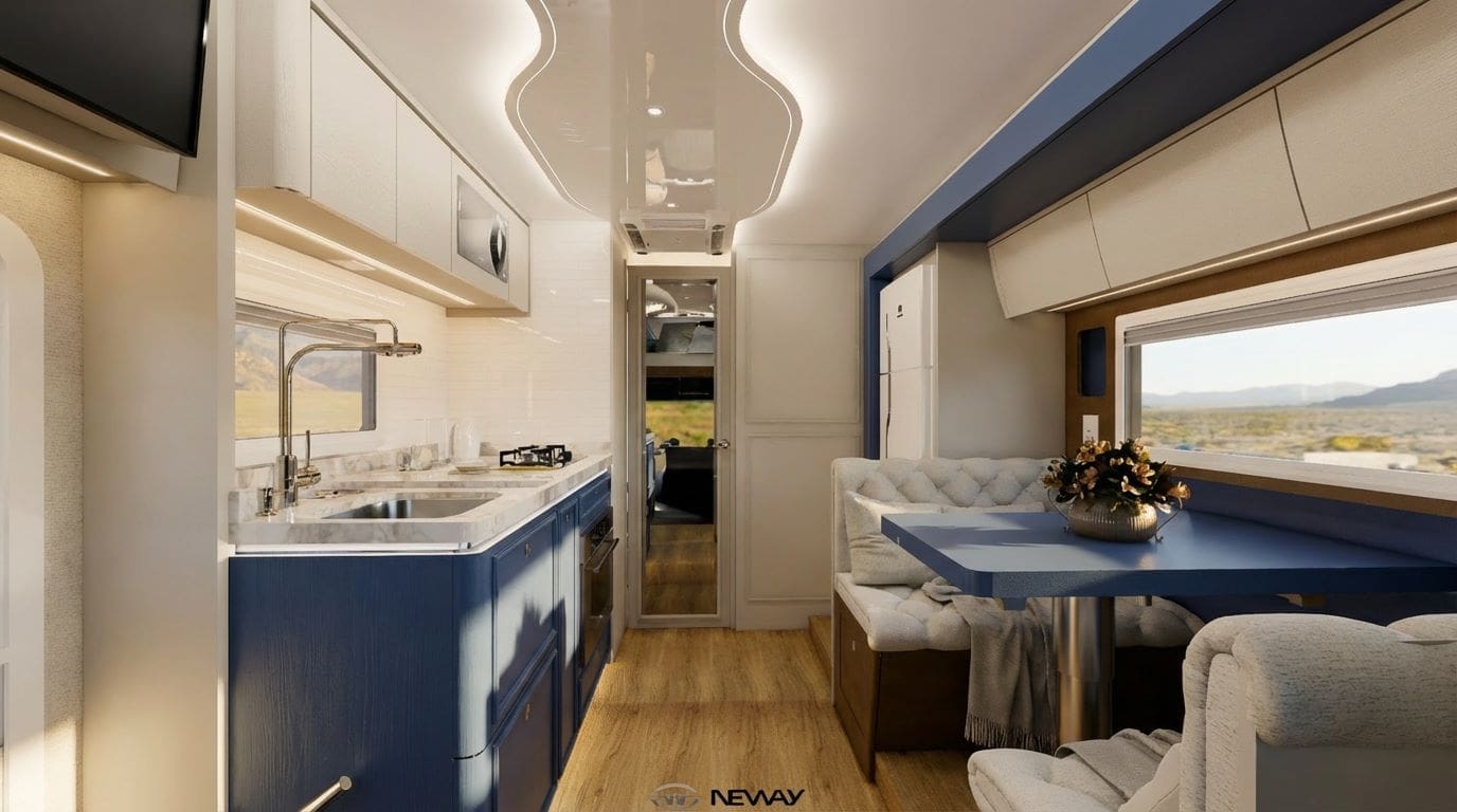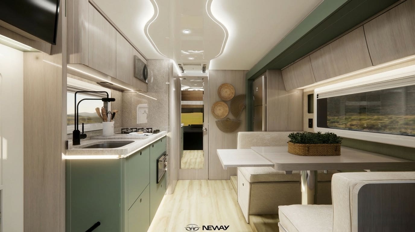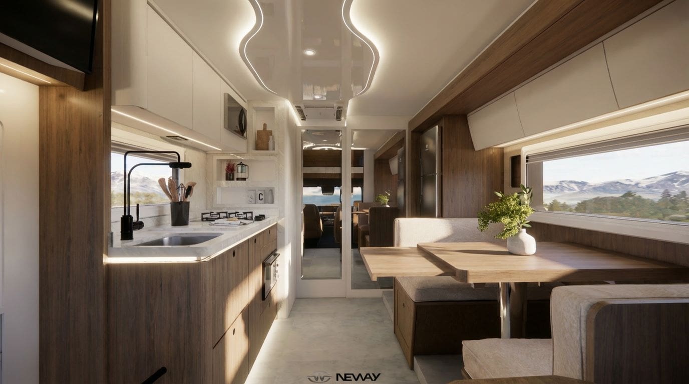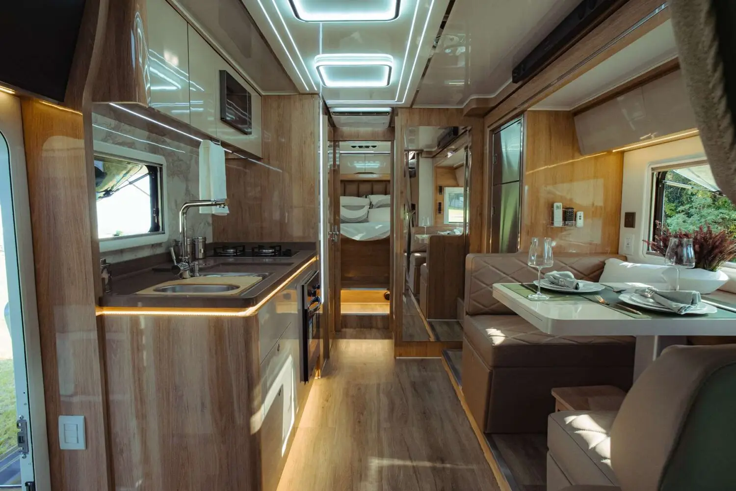 Suas elegantes linhas aerodinâmicas melhoram o desempenho e a estabilidade na estrada e fazem dele um dos RV’s mais bonitos do mercado.